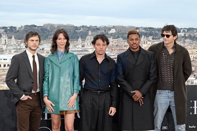 January 19, 2026, Rome. Presentation of The Beauty, the new international thriller television series from FX, from executive producer Ryan Murphy, starting January 22nd on Disney+. Pictured are the cast, including Evan Peters, Rebecca Hall wearing a Fendi dress, Anthony Ramos wearing Dolce & Gabbana, Jeremy Pope, and Ashton Kutcher., Credit:Maria Laura Antonelli / Avalon