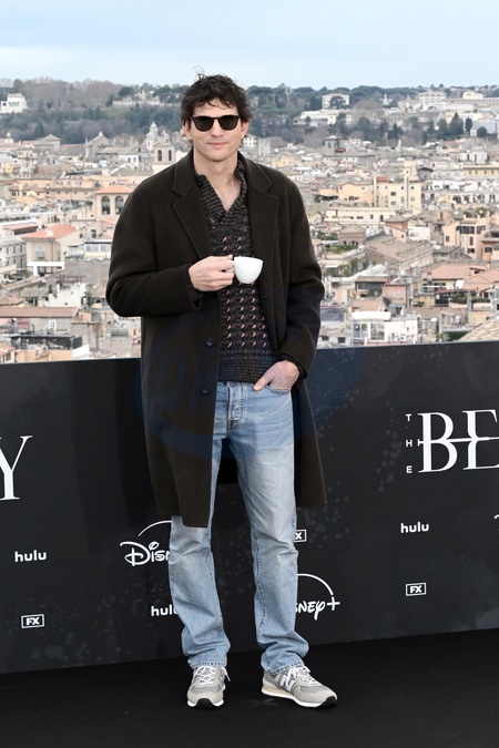 January 19, 2026, Rome. Presentation of The Beauty, the new international thriller television series from FX, from executive producer Ryan Murphy, starting January 22nd on Disney+. Pictured: Ashton Kutcher with a cup of cappuccino., Credit:Maria Laura Antonelli / Avalon