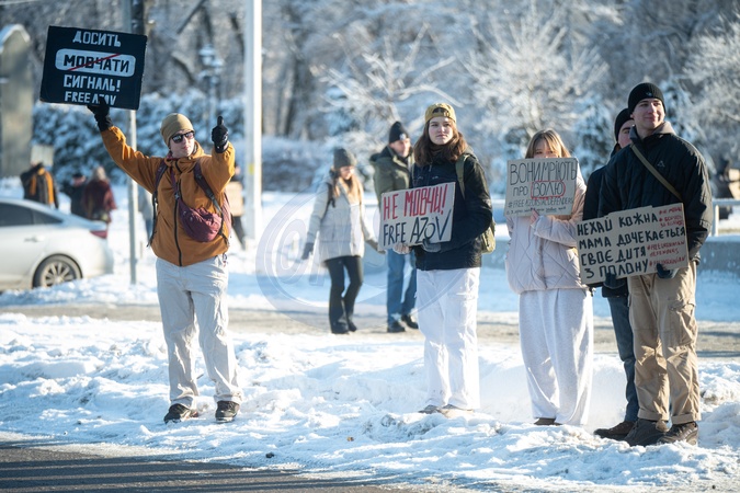 Activists hold placards during a weekly reminder rally in support of prisoners of war from the Mariupol garrison, all prisoners of war and missing defenders of Ukraine, titled "Don't Be Silent! Captivity Kills,” held outside the Dorohozhychi metro station, Kyiv, Ukraine, on January 18, 2026, Credit:Danylo Antoniuk / Avalon