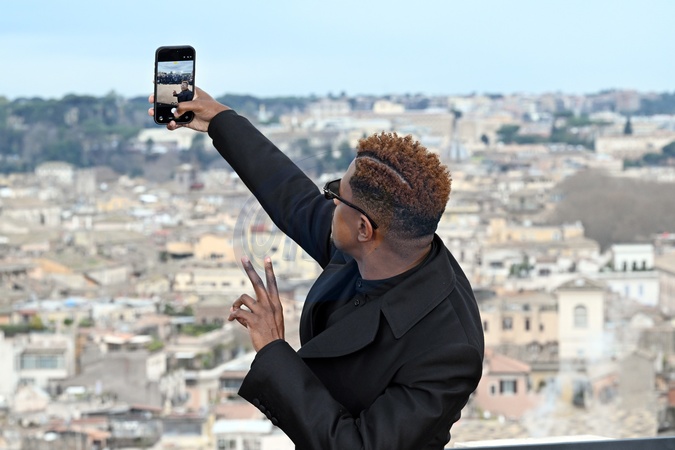 January 19, 2026, Rome. Presentation of The Beauty, the new international thriller television series from FX, from executive producer Ryan Murphy, starting January 22nd on Disney+. In the photo, Jeremy Pope takes a selfie with photographers., Credit:Maria Laura Antonelli / Avalon