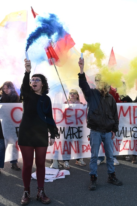 Camp Darby base, protest garrison 'hands off Venezuela, stop US imperialism and Zionism. Freedom for Maduro and Cilias Flores'. Pisa, Italy 18 January 2026, Credit:Aleandro Biagianti / Avalon