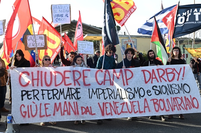 Camp Darby base, protest garrison 'hands off Venezuela, stop US imperialism and Zionism. Freedom for Maduro and Cilias Flores'. Pisa, Italy 18 January 2026, Credit:Aleandro Biagianti / Avalon