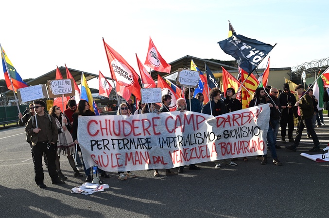 Camp Darby base, protest garrison 'hands off Venezuela, stop US imperialism and Zionism. Freedom for Maduro and Cilias Flores'. Pisa, Italy 18 January 2026, Credit:Aleandro Biagianti / Avalon