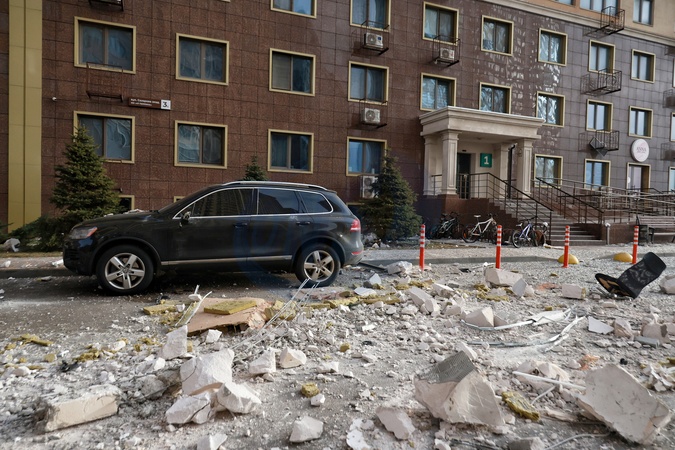 The area around a 25-storey residential building strewn with glass, stones and broken furniture after a Russian drone attack in Odesa, Ukraine, on January 19, 2026, Credit:Nina Liashonok / Avalon