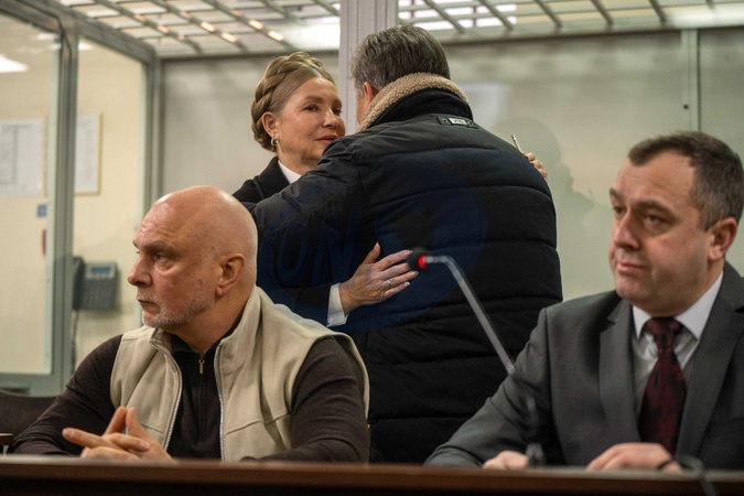 Lawyer Maksym Soroka (R) and MP Yuliia Tymoshenko, leader of the Fatherland party parliamentary faction and a suspect in a case involving the alleged proposal of an unlawful benefit to Ukrainian lawmakers, are seen during a closed court hearing in Kyiv, Ukraine, on January 19, 2026, Credit:Danylo Antoniuk / Avalon