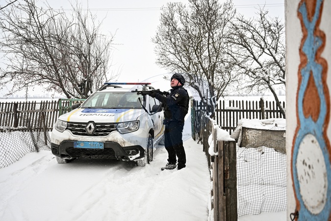 Police evacuate a family that agreed to relocate to a safer area from a frontline settlement near Huliaipole, Zaporizhzhia region, on January 16, 2026. With the front line close and the security situation extremely dangerous, police deliver humanitarian aid, assist people living alone with basic supplies, evacuate residents, and care for abandoned animals in depopulated villages, Credit:Dmytro Smolienko / Avalon