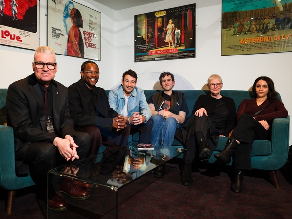 Mark Kermode, Akinola Davies Jr, Bart Layton, Harry Melling, Philippa Lowthorpe and Composer Emilie Levienaise-Farrouch back stage before Mark Kermode in 3D on Monday 19 January 2026