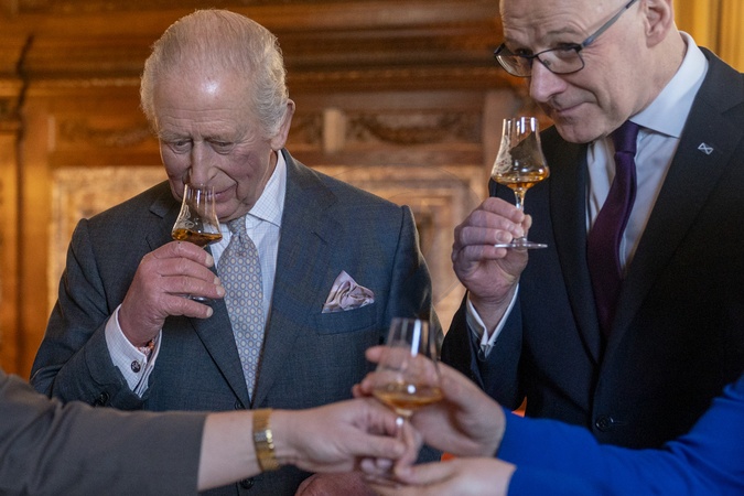 King Charles III tastes whisky from Ian MacLeod Distillers, with the First Minister of Scotland John Swinney during a reception at the Palace of Holyroodhouse, Edinburgh, to mark the Scotland Investment Forum and celebrate Scotland's entrepreneurial economy. Picture date: Monday January 19, 2026., Credit:Jane Barlow / Avalon