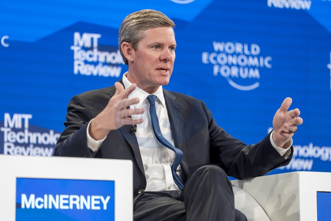 Ryan McInerney, Chief Executive Officer, Visa during the Scaling AI: Now Comes the Hard Part session at the World Economic Forum Annual Meeting 2026 in Davos-Klosters, Switzerland, on 20/1/2026 from 08:15 to 09:00 in the Congress Centre – Sanada (Zone E), Stakeholder Dialogue. (ai scaling). 2026 World Economic Forum. Copyright: World Economic Forum/Valeriano Di Domenico, Credit:World Economic Forum / Avalon