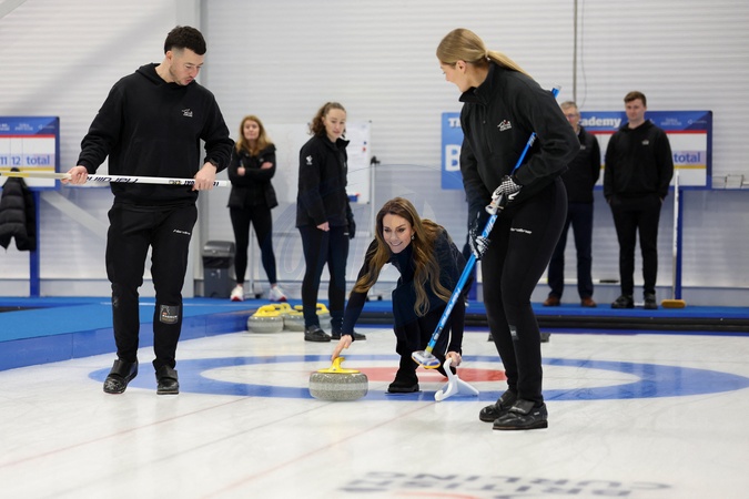 Britain's Kate, Princess of Wales takes part in curling as she meets with the Team GB and Paralympics GB Curling teams ahead of the Winter Olympic Games at the National Curling Academy in Stirling, Scotland, Britain, January 20, 2026., Credit:Russell Cheyne / Avalon