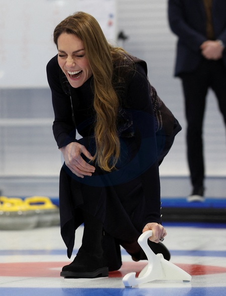 Britain's Kate, Princess of Wales reacts while participating in curling as she meets with the Team GB and Paralympics GB Curling teams ahead of the Winter Olympic Games at the National Curling Academy in Stirling, Scotland, Britain, January 20, 2026., Credit:Russell Cheyne / Avalon