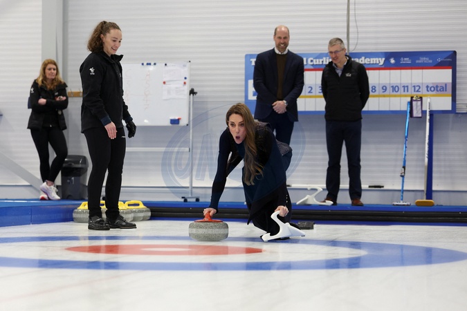 Britain's Kate, Princess of Wales participates in curling as Britain's William, Prince of Wales, Scottish curler Jen Dodds and Executive Performance Director at British Curling Nigel Holl watch at the National Curling Academy in Stirling, Scotland, Britain, January 20, 2026., Credit:Russell Cheyne / Avalon