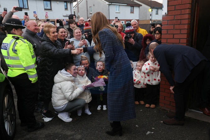Britain's William, Prince of Wales and Kate, Princess of Wales greet people as they visit 'The Gothenburg', known locally as 'The Goth', a community-run pub in the former mining village of Fallin, near Stirling, Scotland, Britain, January 20, 2026., Credit:Russell Cheyne / Avalon