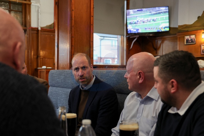 Britain's William, Prince of Wales talks to people at 'The Gothenburg', known locally as 'The Goth', a community-run pub in the former mining village of Fallin, near Stirling, Scotland, Britain, January 20, 2026., Credit:Russell Cheyne / Avalon