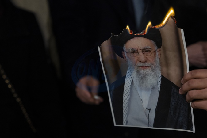 Italia Viva protest outside the Iranian Embassy; in the photo, protesters burn a photo of Ali Khamenei. Rome, Italy 20 January 2026, Credit:Francesco Fotia / Avalon