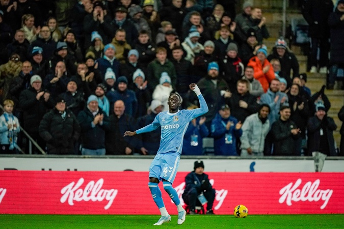 Romain Esse of Coventry City celebrates his goal to make it 1-0 during the Sky Bet Championship match Coventry City vs Millwall at Coventry Building Society Arena, Coventry, United Kingdom, 20th January 2026, Credit:Maynard Manyowa/News Images / Avalon