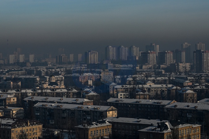 Residential high-rise buildings are shrouded in smog following a Russian attack in Kyiv, Ukraine, on January 20, 2026. The Russian army attacked the Ukrainian capital with missiles and attack drones. Fires broke out, causing smog over parts of the city, as well as power and water supply disruptions, leaving more than 5,600 buildings without heating, Credit:Yevhen Kotenko / Avalon