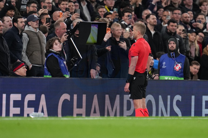 Referee is sent over to screen for possible red card during the UEFA Champions league Matchday 7 of 8 Tottenham Hotspur vs Borussia Dortmund at Tottenham Hotspur Stadium, London, United Kingdom, 20th January 2026, Credit:Harvey Murphy/News Images / Avalon