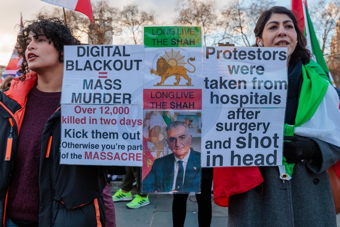 Parliament Square, London, UK. 20th January 2026.Activists and members of the Iranian community in London protest opposite the Houses of Parliament, demanding that the UK government place the Islamic Revolutionary Guard Corps (IRGC) on Britain's terrorist list with chants including 'UK Government, stop supporting terrorists!' and 'IRGC Terrorists, UK put them on the list!", Credit:Photo by Amanda Rose / Avalon