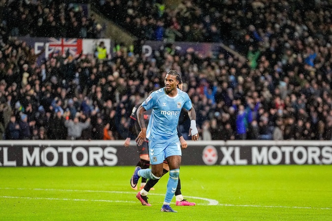Haji Wright of Coventry City celebrates his goal to make it 2-1 during the Sky Bet Championship match Coventry City vs Millwall at Coventry Building Society Arena, Coventry, United Kingdom, 20th January 2026, Credit:Maynard Manyowa/News Images / Avalon