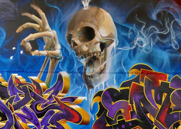 The recent colourful artworks on the underside of the viaduct. The Loddon Viaduct is a place where graffiti artists come to display their talents, with ever changing artworks on the underpass to brighten up commuters and walkers days with the vibrant displays, one often being covered by another within days. The work can be seen from the River Thames, the link road and the showcase cinema complex., Credit:Geoffrey Swaine / Avalon