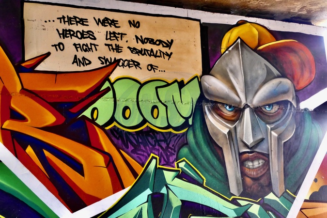 The recent colourful artworks on the underside of the viaduct. The Loddon Viaduct is a place where graffiti artists come to display their talents, with ever changing artworks on the underpass to brighten up commuters and walkers days with the vibrant displays, one often being covered by another within days. The work can be seen from the River Thames, the link road and the showcase cinema complex., Credit:Geoffrey Swaine / Avalon