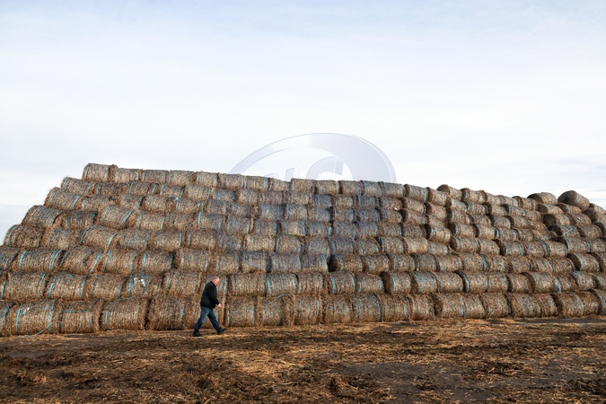 A man passes by straw bales used for heating at a school in the Marazliivka territorial community, Odesa region, Ukraine, on January 19, 2026. Due to prolonged electricity outages and heating disruptions resulting from Russian missile and drone attacks on Ukraine's energy infrastructure, schools in the region are switching to straw heating, Credit:Nina Liashonok / Avalon
