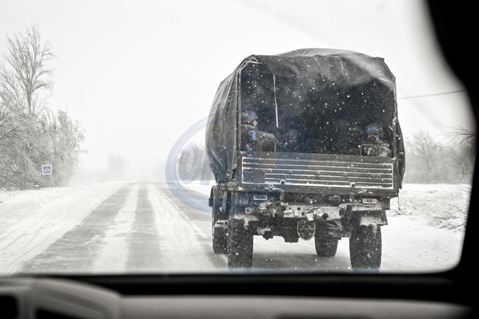 Servicemen of the Armed Forces of Ukraine ride in a truck along a frontline road in the Huliaipole area, Zaporizhzhia region, Ukraine, on January 16, 2026. The situation in the Huliaipole sector has remained tense for several weeks. Russian forces are attempting to seize Huliaipole, with dozens of clashes reported daily both in the town itself and in surrounding settlements, Credit:Dmytro Smolienko / Avalon
