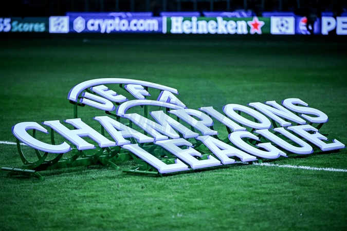 San Siro Stadium. Champions League Matchday 7. FC Internazionale Milano vs. Arsenal FC. Pictured: The Champions League crest on the pitch. Milan, Italy 20 January 2026, Credit:Nicola Marfisi / Avalon