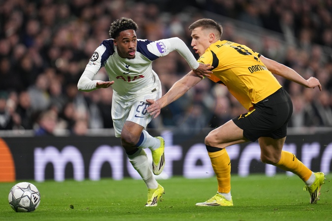 Wilson Odobert of Tottenham Hotspur gets past Nico Schlotterbeck of Borussia Dortmund during the UEFA Champions league Matchday 7 of 8 Tottenham Hotspur vs Borussia Dortmund at Tottenham Hotspur Stadium, London, United Kingdom, 20th January 2026, Credit:Harvey Murphy/News Images / Avalon