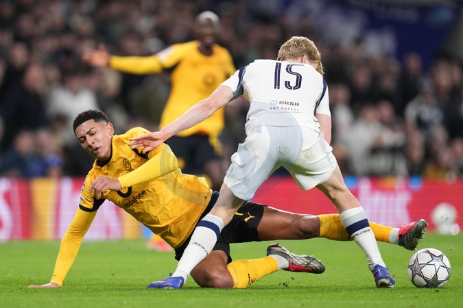 Lucas Bergvall of Tottenham Hotspur and Jobe Bellingham of Borussia Dortmund during the UEFA Champions league Matchday 7 of 8 Tottenham Hotspur vs Borussia Dortmund at Tottenham Hotspur Stadium, London, United Kingdom, 20th January 2026, Credit:Harvey Murphy/News Images / Avalon