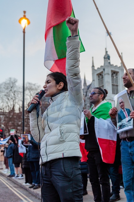 Parliament Square, London, UK. 20th January 2026.Ahead of tomorrow's PMQ, (Prime Ministers Questions), activists and members of the Iranian community in London protest opposite the Houses of Parliament, demanding that the UK government place the Islamic Revolutionary Guard Corps (IRGC) on Britain's terrorist list with chants including 'UK Government, stop supporting terrorists!' and 'IRGC Terrorists, UK put them on the list!", Credit:Photo by Amanda Rose / Avalon