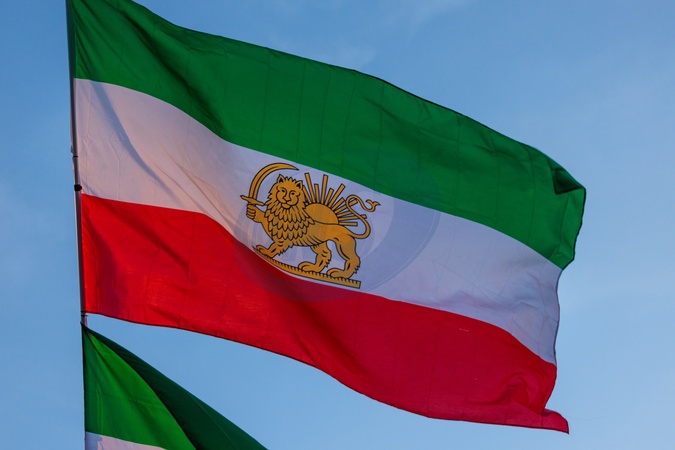 Parliament Square, London, UK. 20th January 2026.The historic Imperial 'Lion and Sun' flag of Iran flying in London.Ahead of tomorrow's PMQ, (Prime Ministers Questions), activists and members of the Iranian community in London protest opposite the Houses of Parliament, demanding that the UK government place the Islamic Revolutionary Guard Corps (IRGC) on Britain's terrorist list., Credit:Photo by Amanda Rose / Avalon