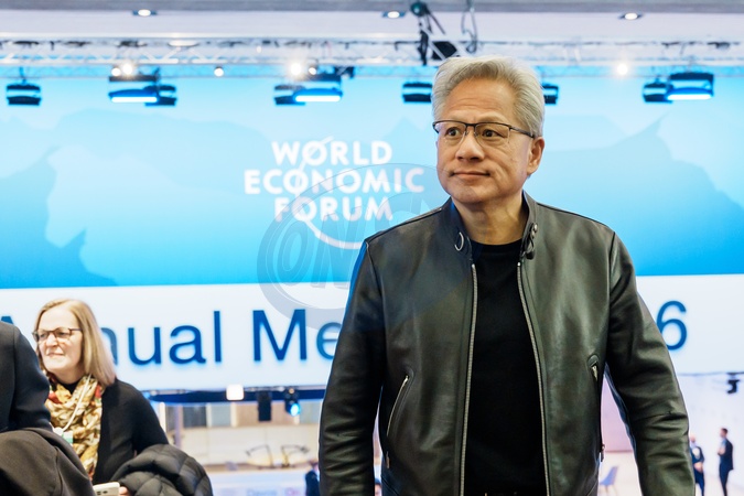 Conversation with Jensen Huang, President and CEO of NVIDIA session with Jensen Huang, Founder, President and Chief Executive Officer, NVIDIA, USA; Laurence Fink, Chair and CEO, BlackRock; Interim Co-Chair, World Economic Forum, BlackRock, USA; at the World Economic Forum Annual Meeting 2026 in Davos-Klosters, Switzerland, on 21 January 2026 from 11:30 to 12:00 in the Congress Centre – Congress Hall (Zone C), One-on-One., Credit:Mattias Nutt / Avalon