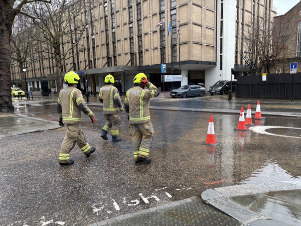 Flooding and emergency response closes roads at Shepherd’s Bush roundabout, London