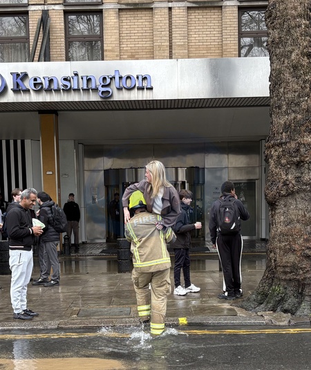 Firefighter carries woman through floodwater near Shepherd’s Bush roundabout, London