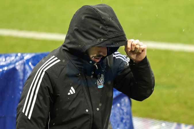 Sandro Tonali of Newcastle Untied pulls his hood over his face as rain pours during the UEFA Champions League Matchday 7 of 8 Newcastle United v PSV Eindhoven at St. James's Park, Newcastle, United Kingdom, 21st January 2026, Credit:Mark Cosgrove/News Images / Avalon