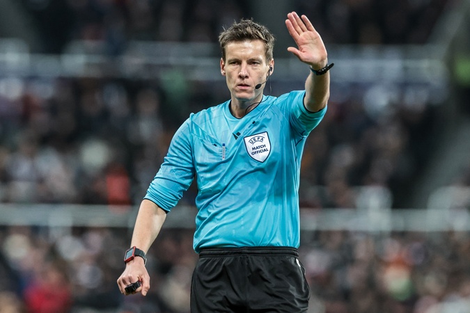 Referee Daniel Siebert gives instructions during the UEFA Champions League Matchday 7 of 8 Newcastle United v PSV Eindhovenn at St. James's Park, Newcastle, United Kingdom, 21st January 2026, Credit:Mark Cosgrove/News Images / Avalon