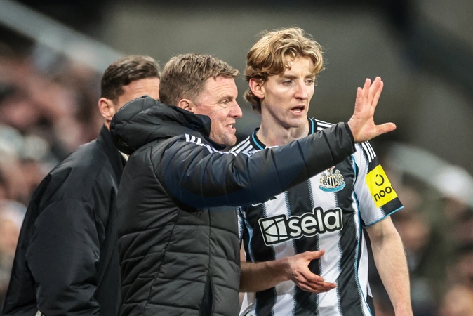 Eddie Howe manager of Newcastle United gives his team instructions Anthony Gordon of Newcastle Untied during the UEFA Champions League Matchday 7 of 8 Newcastle United v PSV Eindhovenn at St. James's Park, Newcastle, United Kingdom, 21st January 2026, Credit:Mark Cosgrove/News Images / Avalon