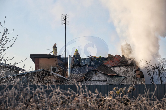 Firefighters extinguish a fire on the roof of a house that broke out following a Russian drone attack in Oleksandrivka, Odesa region, Ukraine, on January 21, 2026, Credit:Nina Liashonok / Avalon