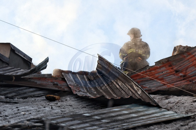 A firefighter extinguishes a fire on the roof of a house that broke out following a Russian drone attack in Oleksandrivka, Odesa region, Ukraine, on January 21, 2026, Credit:Nina Liashonok / Avalon