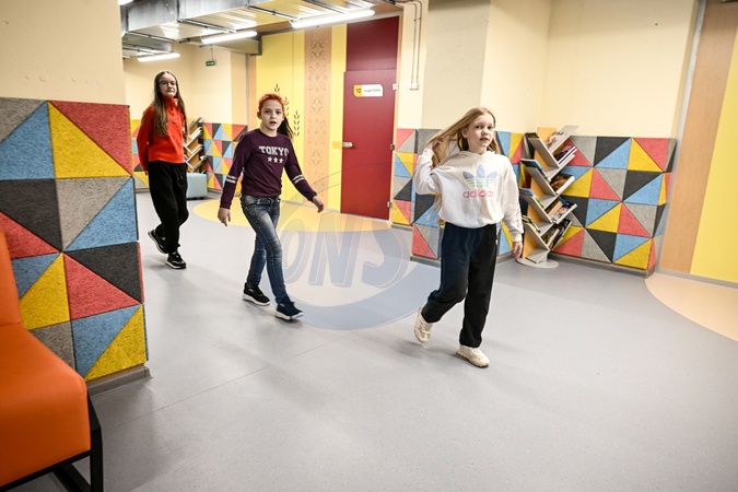 Students walk along a corridor of a new underground school opened on the premises of Secondary School No. 87 in the Dniprovskyi district of Zaporizhzhia, Ukraine, on January 15, 2026. This is the 18th safe educational space opened in Zaporizhzhia region. Built under a state radiation shelter construction program, the underground school enables in-person learning in safe conditions. Covering more than 1,300 square meters, it can accommodate nearly 1,000 students in two shifts from School No. 87 and neighboring Gymnasium No. 26 and is equipped with modern classrooms, multimedia facilities, a cafeteria, medical unit, sanitary rooms, a lounge area and a sports corner, Credit:Dmytro Smolienko / Avalon