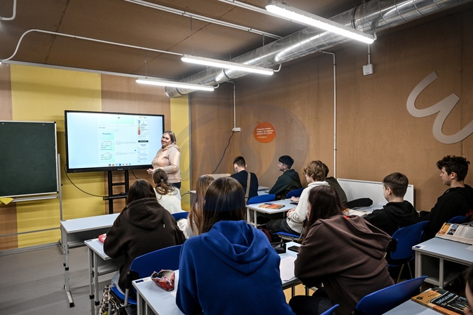 A teacher conducts a lesson in a classroom of a new underground school opened on the premises of Secondary School No. 87 in the Dniprovskyi district of Zaporizhzhia, Ukraine, on January 15, 2026. This is the 18th safe educational space opened in Zaporizhzhia region. Built under a state radiation shelter construction program, the underground school enables in-person learning in safe conditions. Covering more than 1,300 square meters, it can accommodate nearly 1,000 students in two shifts from School No. 87 and neighboring Gymnasium No. 26 and is equipped with modern classrooms, multimedia facilities, a cafeteria, medical unit, sanitary rooms, a lounge area and a sports corner, Credit:Dmytro Smolienko / Avalon