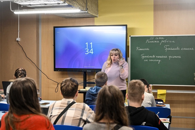 A teacher conducts a lesson in a classroom of a new underground school opened on the premises of Secondary School No. 87 in the Dniprovskyi district of Zaporizhzhia, Ukraine, on January 15, 2026. This is the 18th safe educational space opened in Zaporizhzhia region. Built under a state radiation shelter construction program, the underground school enables in-person learning in safe conditions. Covering more than 1,300 square meters, it can accommodate nearly 1,000 students in two shifts from School No. 87 and neighboring Gymnasium No. 26 and is equipped with modern classrooms, multimedia facilities, a cafeteria, medical unit, sanitary rooms, a lounge area and a sports corner, Credit:Dmytro Smolienko / Avalon