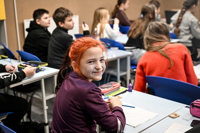 A schoolgirl poses for a photo at her desk during a lesson in a classroom of a new underground school opened on the premises of Secondary School No. 87 in the Dniprovskyi district of Zaporizhzhia, Ukraine, on January 15, 2026. This is the 18th safe educational space opened in Zaporizhzhia region. Built under a state radiation shelter construction program, the underground school enables in-person learning in safe conditions. Covering more than 1,300 square meters, it can accommodate nearly 1,000 students in two shifts from School No. 87 and neighboring Gymnasium No. 26 and is equipped with modern classrooms, multimedia facilities, a cafeteria, medical unit, sanitary rooms, a lounge area and a sports corner, Credit:Dmytro Smolienko / Avalon