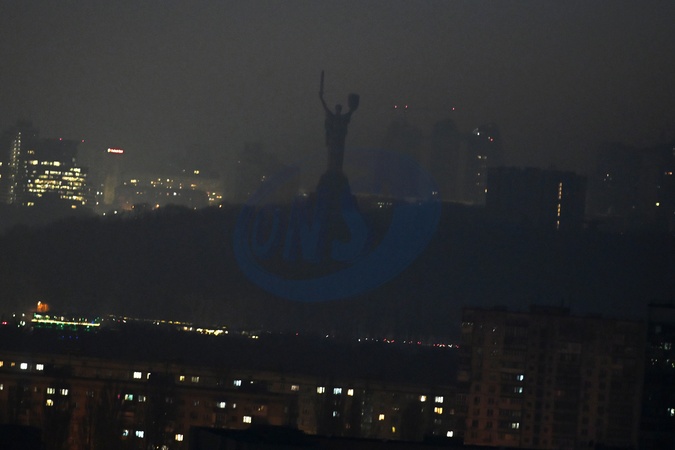 A view of the Motherland Monument from the left bank of Kyiv, Ukraine, on January 21, 2026. Emergency electricity outages remain in effect across the capital, Credit:Yevhen Kotenko / Avalon