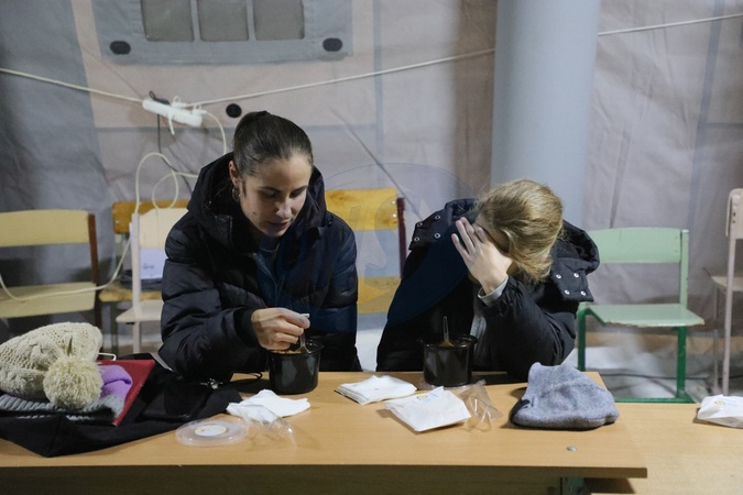 Women taste hot meals at a mobile heating point operated by the State Emergency Service of Ukraine in the Voskresenka district of Kyiv, Ukraine, on January 21, 2026, Credit:Yuliia Ovsiannikova / Avalon