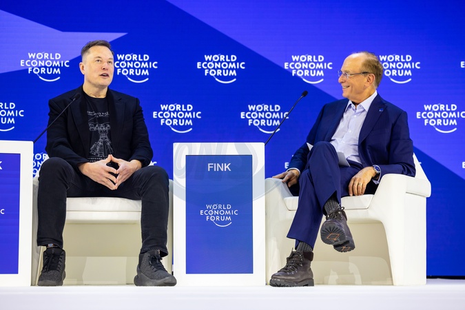 Elon Musk in conversation with Laurence D. Fink, Chair and CEO of BlackRock at the World Economic Forum 2026 Annual Meeting in Davos, Switzerland, Credit:World Economic Forum / Avalon