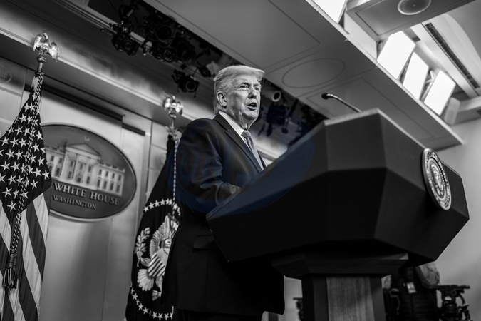President Donald Trump addresses members of the media in the James S. Brady Press Briefing Room, Tuesday, January 20, 2026., Credit:Joyce N. Boghosian / Avalon
