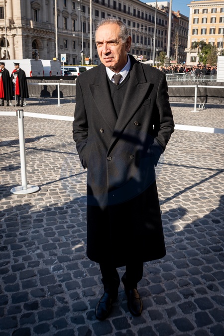 Carlo Capasa is seen at the funeral ceremony for the late Italian fashion designer Valentino Gavarani at Basilica di Santa Maria degli Angeli e dei Martiri in Rome, Italy, on 23 January, 2026., Credit:Stefano Costantino TTL / Avalon